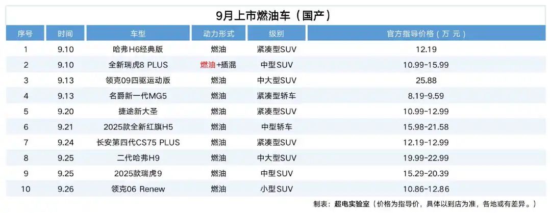 从9月上市的新车来看,新能源车和燃油车的比例约为3:2,新能源车明显开始井喷。