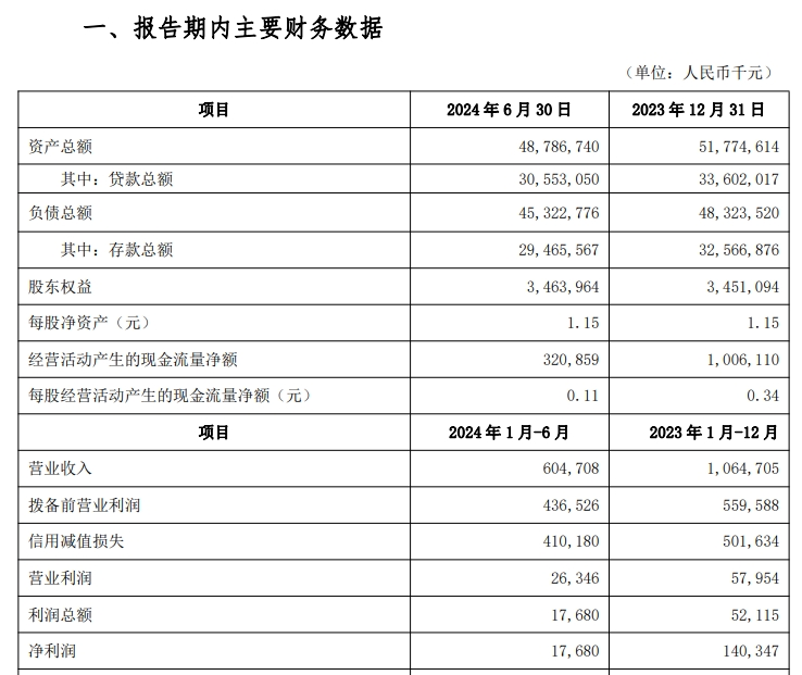 在贷余额中,该行的个人贷款以及企业贷款均有下降。2024年6月末,该行个人贷款余额为289.98亿元,减少26.39亿元;企业贷款为10.91亿元,减少4.69亿元。