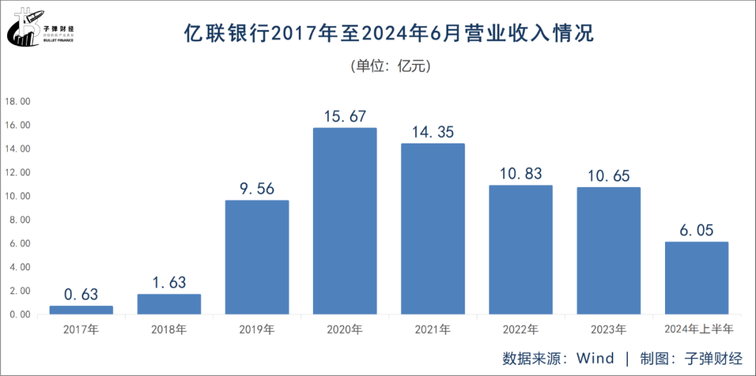 这三年,亿联银行营业收入也大幅增长,2018年至2020年分别为1.63亿元、9.56亿元、15.67亿元。