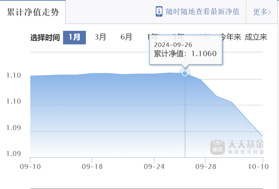 天天基金数据显示,该基金自9月22日起连续跑输同类平均,截至10月10日,A类累计收益率-1.06%,C类累计收益率-1.09%,在中短债基金中排名垫底。