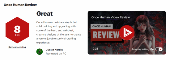 IGN为《七日世界》打出了8分的成绩,称其“创造出了令人享受的生存建造体验”。