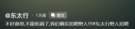 本还有网友质疑真假,然后东太行景区和邯郸文旅官方账号都出来进行了转发:不好意思,不能低调了,我们确实招聘野人!!!