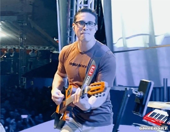 当地时间7月13日,35岁的巴西摇滚乐手艾尔斯·萨萨基在萨利诺波利斯一酒店举行演唱会。