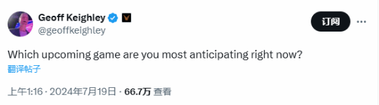 备受玩家们期待的游戏科学巨作《黑神话:悟空》距离发售仅剩不长时间,相信有很多玩家已经迫不及待在游戏里挑战众怪了。近日,TGA主持人Geoff Keighley在X询问众玩家:你现在最期待哪款即将在未来推出的游戏?