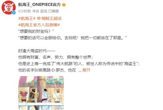 7月22日是航海王之日,也是漫画《航海王》诞生27周年之时。航海王官方 @航海王_ONEPIECE官方 也在今天正式入驻微博,将为海米们分享《航海王》的各种精彩。