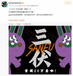 值得一提的是,《三伏》自发售以来就取得了不俗的成绩,发售仅一小时在线人数就超1.3万人,首周销量更是突破20万份。