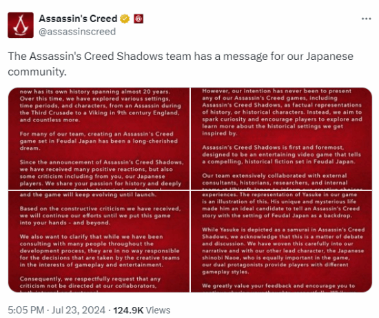 育碧今日就《刺客信条:影》遭日本玩家抵制一事做出了回应,一起来了解一下。
