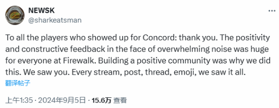 “感谢所有游玩《星鸣特攻》的玩家。面对着铺天盖地的声音,积极性和建设性的反馈对FireWalkStudios的每个人来说都非常重要,这也是我们要建立一个积极的玩家社区的原因。我们看到了你们的表达方式,每一场直播,以及帖子、主题、表情符号,我们都看到了。”