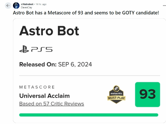 而这也引发了网友们的热议,在Reddit上,有大量玩家对这一评分感到震惊。有网友直言:“(《宇宙机器人》)似乎是年度最佳的有力竞争者。”