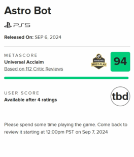 PS最新第一方作品《宇宙机器人》的媒体评测已经于昨晚正式解禁,开分93分,随后上涨至94分,必玩之作。