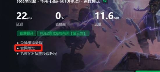 在迅游页面中点击官网地址,快速官网通道点击即可一键进入官网。如果你之前玩过流放之路1,那么就不用重新注册账号,流放之路1的账号是可以直接登录流放之路2的。